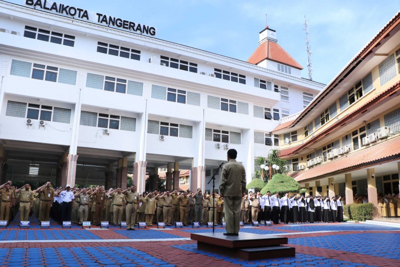 Sekretaris Daerah Kota Tangerang H. Dadi Budaeri memimpin Apel Pagi Pegawai dan Penyerahan SK bagi 255 Calon Pegawai Negeri Sipil (CPNS) Pemerintah Kota Tangerang yang telah memasuki masa tugas.