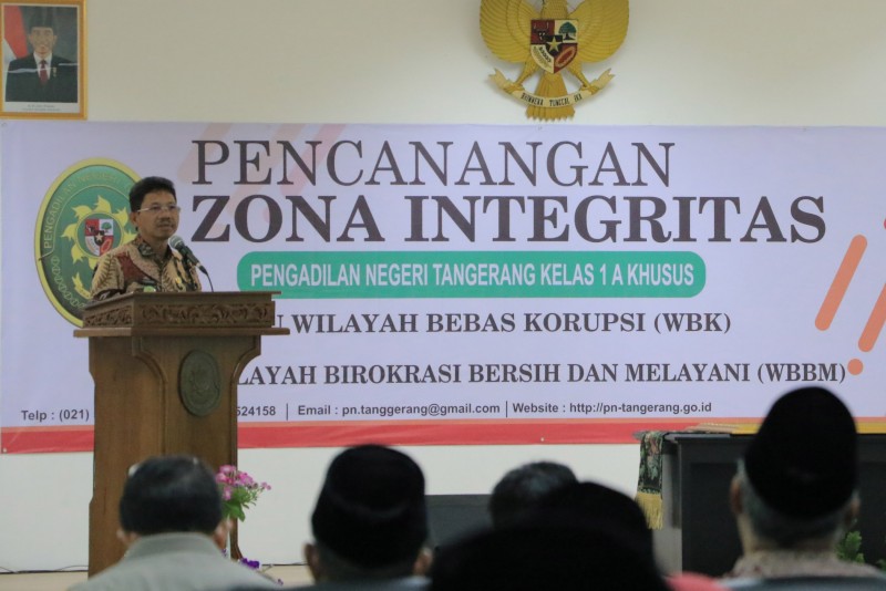 Wakil Wali Kota Tangerang H.Sachrudin hadir dan memberikan sambutan dalam acara Penandatanganan Pencanangan Zona Integritas di wilayah kerja Pengadilan Negeri (PN) Tangerang Kelas 1A Khusus di Ruang Pertemuan Pengadilan Negeri Tangerang, pada Kamis (11/4).