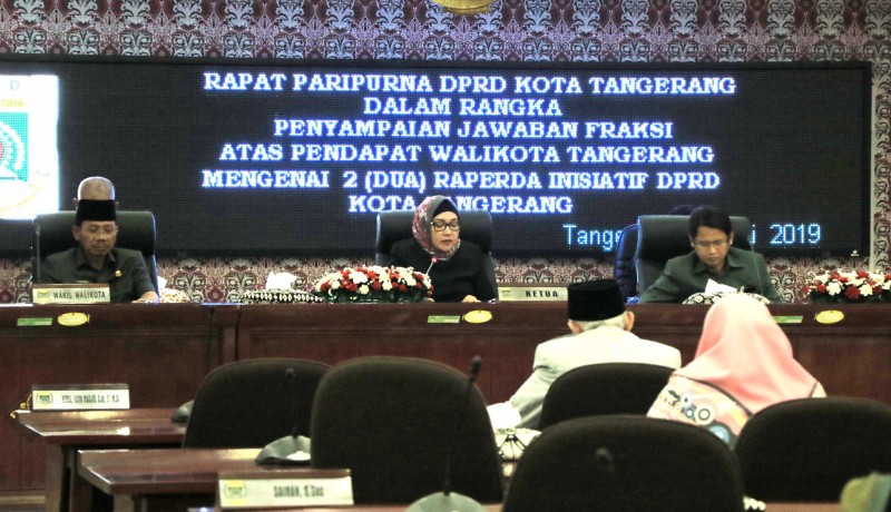 Ditemui di Gedung Rapat Paripurna DPRD Kota Tangerang, Sachrudin menanggapi jawaban fraksi terkait pendapat Wali Kota Tangerang terhadap dua Raperda Yang diajukan oleh DPRD Kota Tangerang antara lain Raperda Pelestarian Dan Pengelolaan Warisan Budaya Non Benda Kota Tangerang Dan Raperda Bantuan Sosial Kematian Bagi Penduduk Miskin Kota Tangerang.