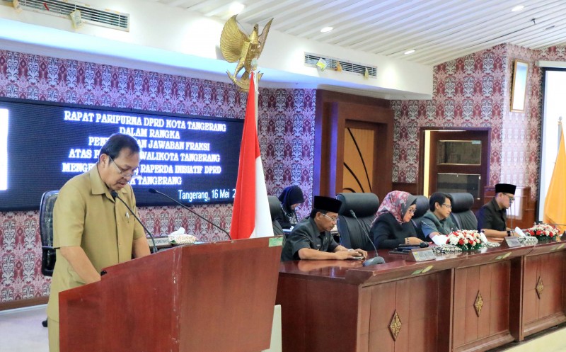 Wakil Wali Kota Tangerang H. Sachrudin hadir dalam Rapat Paripurna Dalam Rangka Penyampaian Jawaban Fraksi Atas Pendapat Wali Kota Tangerang Terhadap Dua Raperda Inisiatif DPRD Kota Tangerang, Kamis (16/05/2019).