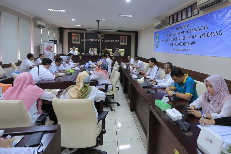 Inspektorat Kota Tangerang, Jumat (22/03), menggelar Sosialisasi Peraturan Perundang-undangan di Aula Kantor Gedung Inspektorat Kota Tangerang. Kegiatan ini bertujuan untuk meningkatkan pengetahuan dan kemampuan para auditor di lingkungan Pemerintah Kota Tangerang.