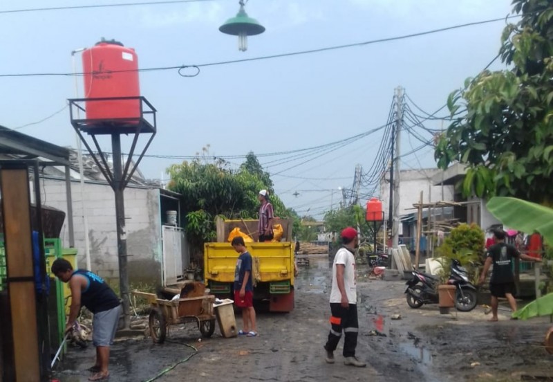 Dinas Lingkungan Hidup (DLH) Kota Tangerang mengerahkan 100 petugasnya, untuk bersih-bersih sampah pasca banjir, Kamis (6/2/20). Para petugas diturunkan di empat titik banjir, diantaranya Total Persada, Taman Elang, Perumahan Garden City, dan Mutiara Peluit.