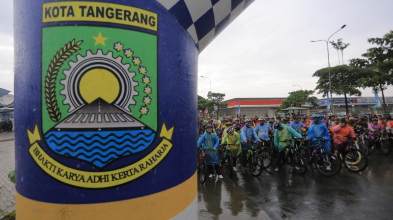 Memeriahkan rangkaian HUT Kota Tangerang Ke-27, ratusan warga mengikuti kegiatan Charity Bike Ride, di kawasan Palem Semi, Cibodas, Tangerang, Sabtu (8/2/20).