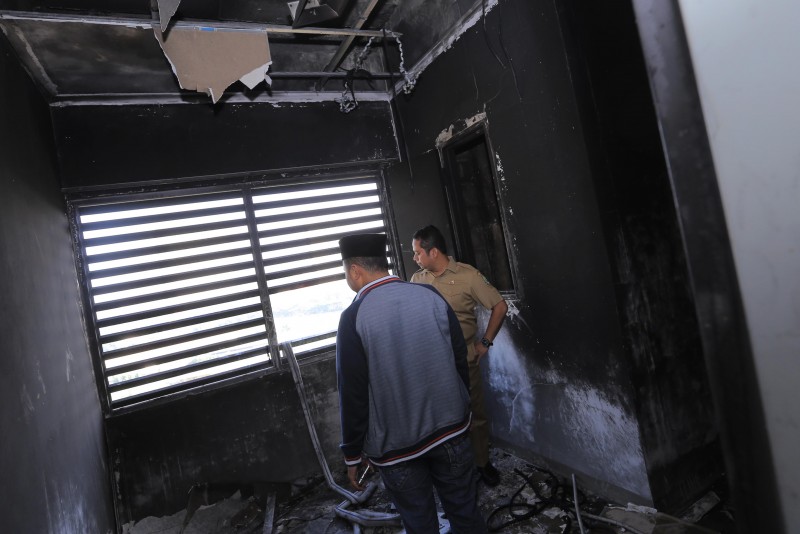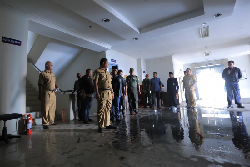 "Kami sudah terjunkan tim dari Pemkot untuk memeriksa dan memperbaiki panel di setiap lantai, tapi kami masih menunggu pemeriksaan tim Labfor POLRI," jelasnya.