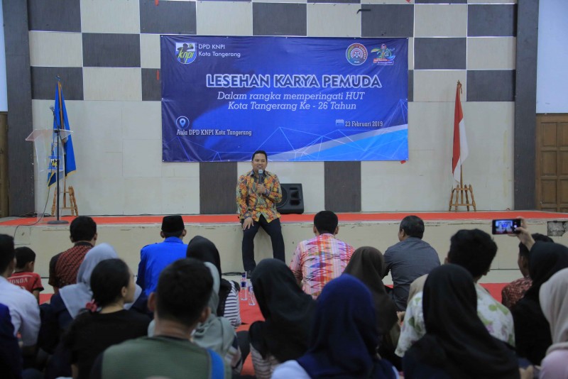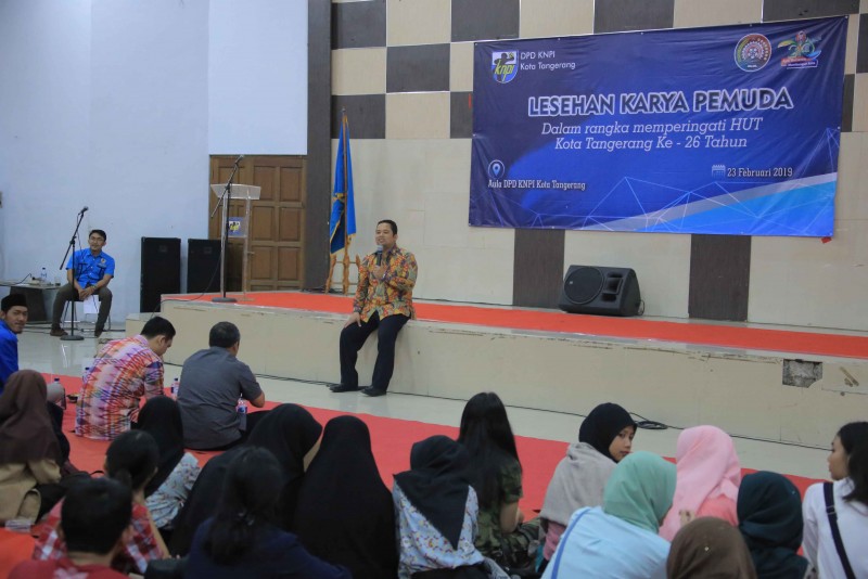 Wali Kota Tangerang Arief R. Wismansyah kunjungi acara Lesehan Karya Pemuda yang diinisiasi oleh DPD Komite Nasional Pemuda Indonesia (KNPI) Kota Tangerang yang dilaksanakan di Gedung KNPI Kota Tangerang Jl. A. Dimyati, Kecamatan Tangerang, Sabtu (23/2/19) sore.