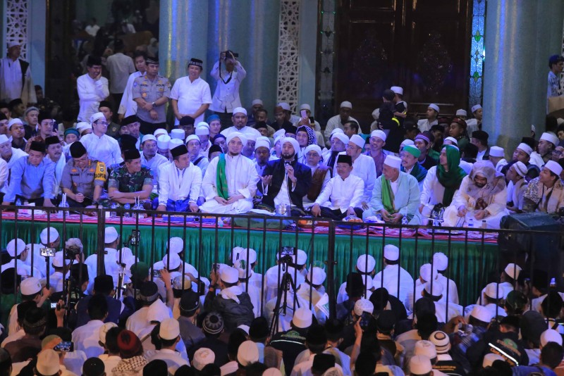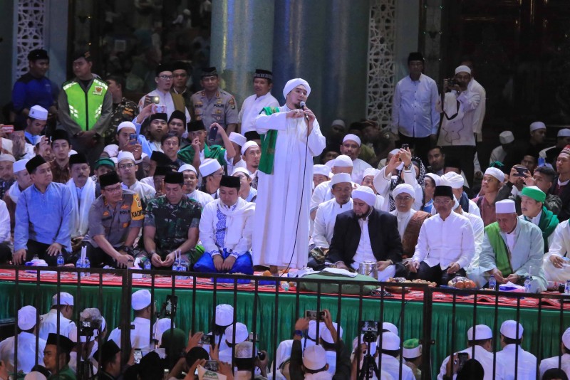 Puluhan ribu masyarakat sejak sore hari memadati kawasan Masjid Raya Al A'zhom untuk mengikuti kegiatan Tangerang Bershalawat 2019 dengan bintang tamu Habib Syech bin Abdul Qadir Assegaf.