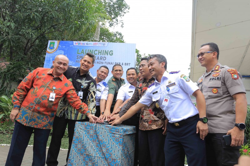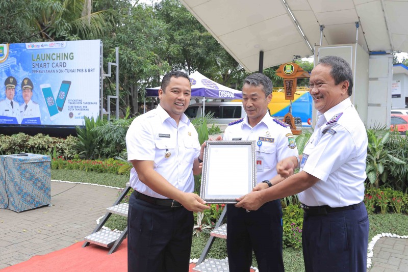 Wali Kota Tangerang H. Arief R Wismansyah didampingi Sekretaris Daerah Kota Tangerang H. Herman Suwarman secara langsung melaunching Smart Card dan Sistem Pembayaran Non-Tunai PKB & BRT serta Peningkatan Akreditasi Pelayanan Pengujian Kendaraan Bermotor (PKB) berlokasi di Kantor UPT Pengujian Kendaraan, Kecamatan Batuceper, Kota Tangerang.