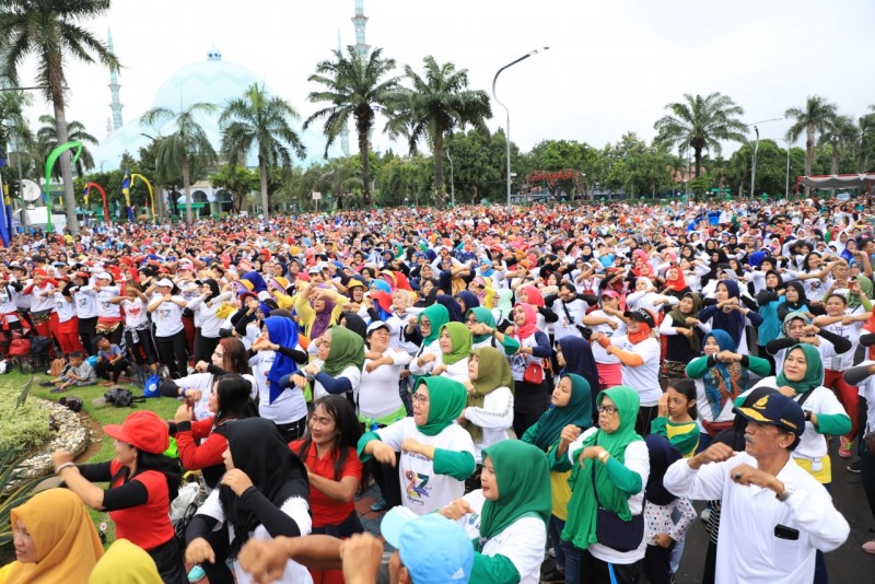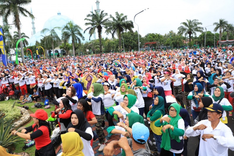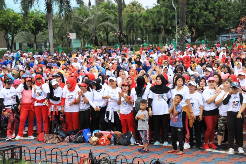 Tak mau ketinggalan, dalam menyemarakkan HUT Kota Tangerang ke-27. DPRD Kota Tangerang menggelar Senam Sehat bersama ribuan Warga Kota Tangerang, di Taman Elektrik, Puspem Kota Tangerang, Minggu (23/2/20).