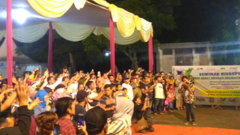 Para pengunjung tumpah ruah sampai ke depan panggung untuk bernyanyi bersama sang youtuber. Cici salah satu Mabor sebutan fans Angga Chandra mengatakan sengaja datang ke Tangerang Expo buat nonton Angga dan melihat pameran ini.