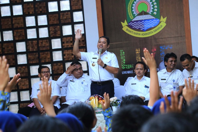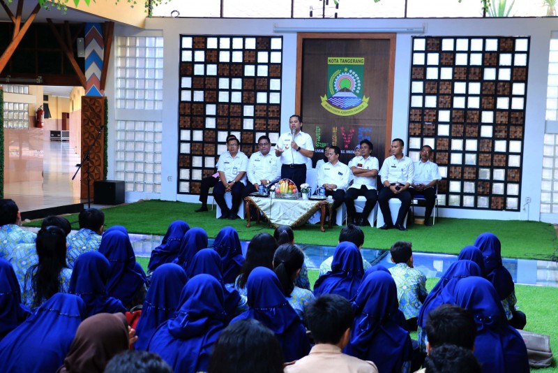 Wali Kota Tangerang H. Arief R. Wismansyah melepas para pelajar Peserta Pengenalan Jelajah Cagar Budaya Kota Tangerang berlokasi di Pendopo Plaza Pusat Pemerintahan Kota Tangerang pada Rabu, (26/2).