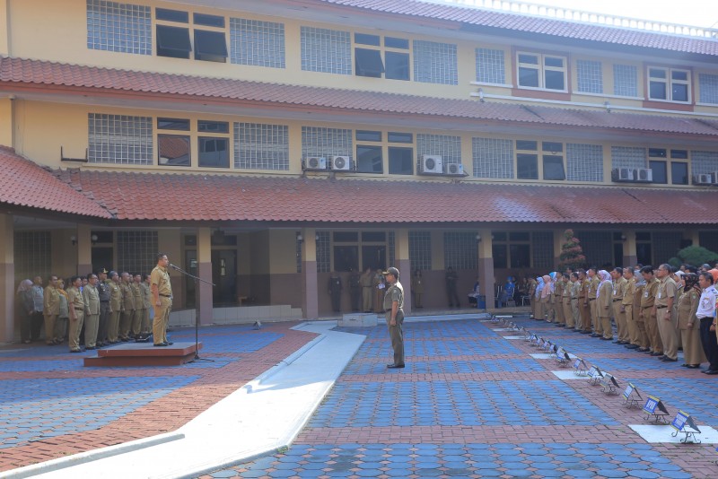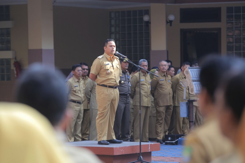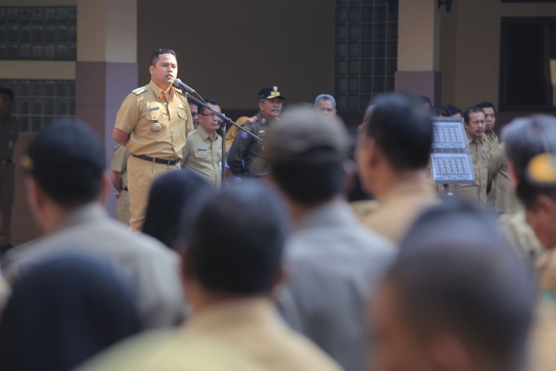 Wali Kota Tangerang H. Arief R. Wismansyah memimpin Apel Pagi Pegawai di lingkup Pemerintah Kota Tangerang yang berlangsung di Lapangan Apel Pusat Pemerintahan Kota Tangerang, Senin (7/1).