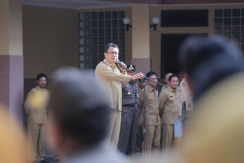 Sekretaris Daerah H. Dadi Budaeri memimpin Apel Pagi Pegawai yang juga menjadi apel pegawai terakhir di tahun 2018.