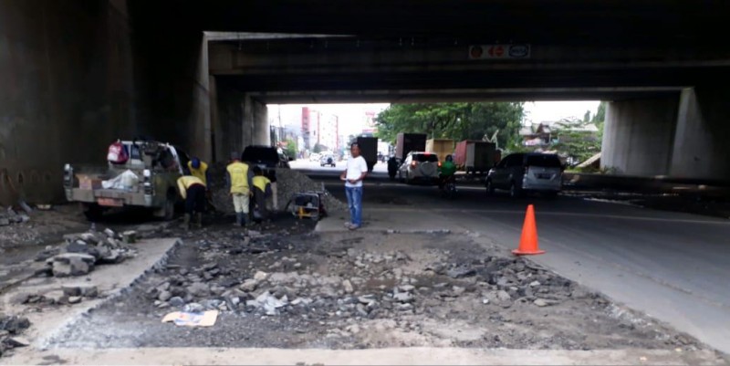 "Sudah diperbaiki, hari ini tim sudah ke lapangan untuk memperbaiki jalan yang rusak," ujar Kepala Dinas PUPR, Decky Priambodo, Minggu (08/03).