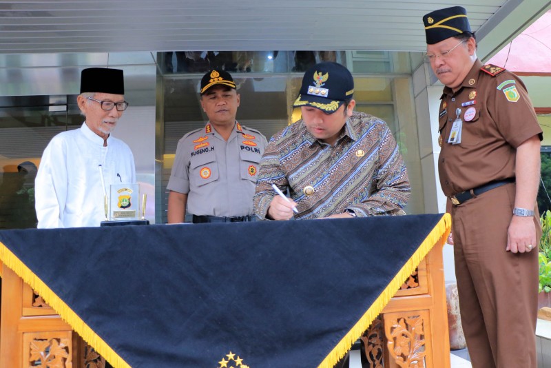Wali Kota Tangerang H. Arief R. Wismansyah hadiri acara Penandatanganan Piagam Pencanangan Pembangunan Zona Integritas berlokasi di Lapangan Polres Metro Tangerang Kota, Kamis (12/3/2020).