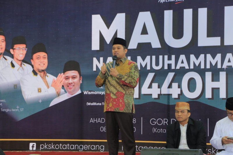 Wali Kota Tangerang, Arief R Wismansyah menghadiri acara Peringatan Maulid Nabi Muhammad SAW 1440 H yang dilaksanakan oleh Partai Keadilan Sejahtera (PKS) Kota Tangerang di GOR Dimyati, Kecamatan Tangerang, Kota Tangerang, Minggu (9/12).