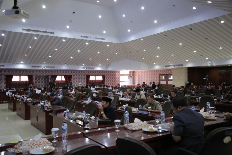 Rapat Paripurna Penyampaian Laporan Keterangan Pertanggungjawaban (LKPJ) Wali Kota 2019, diselenggarakan secara terbatas. Hanya dihadiri para anggota dewan dan kepala dinas. Sementara camat, lurah, kepala bidang dan sejumlah perangkat kerja lainnya, menghadiri Paripurna melalui tayangan streaming yang disajikan Diskominfo. Begitu juga dengan para dewan yang berhalangan hadir.