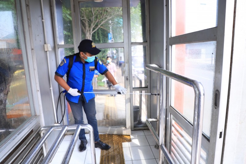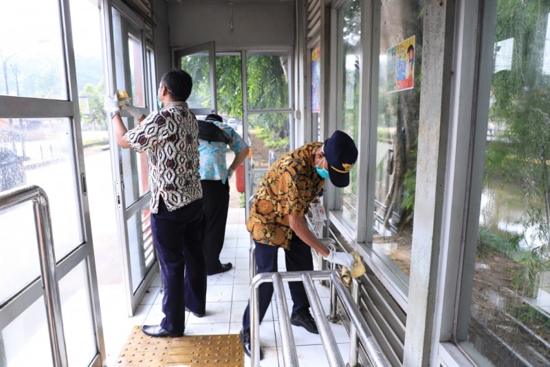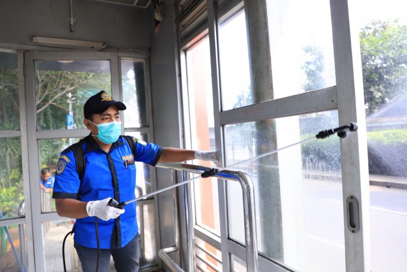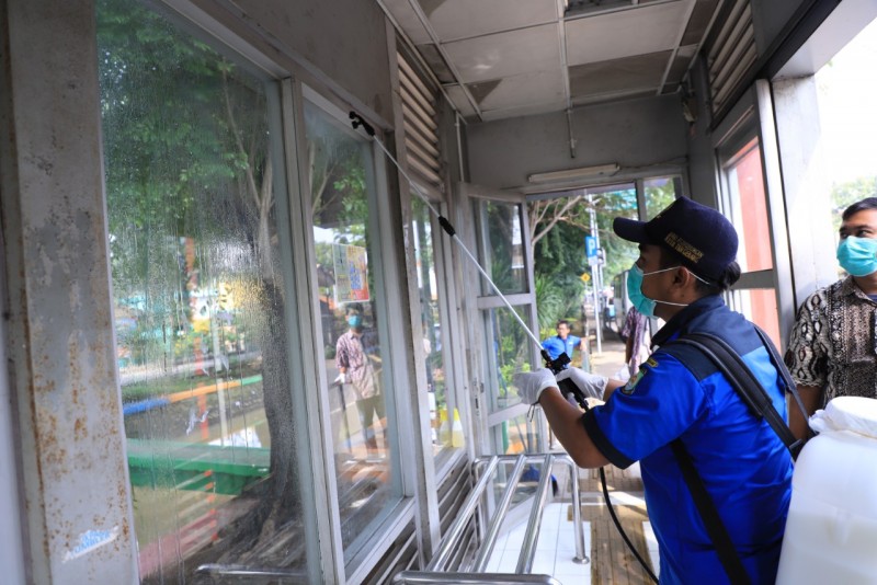 "Sampai saat ini ada enam halte yang kami lakukan penyemprotaN. Selain itu, bus-bus yang telah beroperasi, malamnya kami lakukan penyemprotan disinfektan. Hal ini dilakukan sebagai langkah pencegahan penyebaran Virus Corona," kata KTU Angkutan Umum Massal, Herry Setiawan.