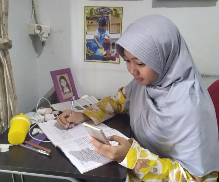 "Anak-anak juga absen foto ke saya di jam kelas matematika lewat whatsapp. Dengan begitu, anak-anak tetap di rumah, tetap belajar, atau bersekolah dengan situasinya saja yang berbeda. Alhamdulillah anak-anak tetap antusias belajar," ungkap Iis.
