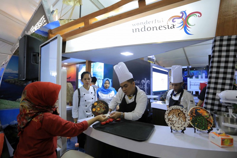 Salah satu stand yang ramai dikunjungi oleh pengunjung adalah milik Kementerian Sekretariat Negara, keunikan yang disuguhkan adalah ditampilkannya photobooth yang menggambarkan tampak depan gedung Istana Negara.