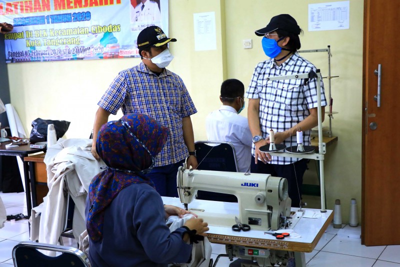 Langkanya Alat Pelindung Diri (APD) dirasakan para tenaga medis yang merawat pasien Covid-19. Tak ingin menyerah pada kondisi, Pemerintah Kota Tangerang melalui Dinas Ketenagakerjaan UPT Balai Latihan Kerja (BLK) Cibodas, turut berkontribusi dengan memproduksi Alat Pelindung Diri (APD) berupa pakaian dekontaminasi atau yang juga dikenal sebagai baju hazmat secara mandiri.