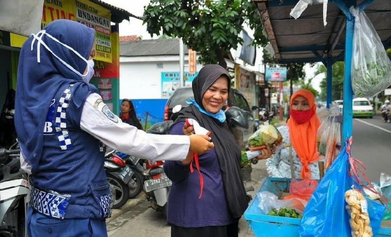 Kata Wahyudi, pembagian masker dilakukan kepada masyarakat yang melintas di depan Kantor Dishub, masyarakat yang masih menjalankan aktivitas di luar rumah seperti pedagang, pengemudi ojek online, serta penumpang angkutan umum. "Kami imbau mereka agar menggunakan masker jika keluar rumah dan meminta mereka untuk tidak keluar rumah jika tidak ada kepentingan yang sangat mendesak," ungkapnya.