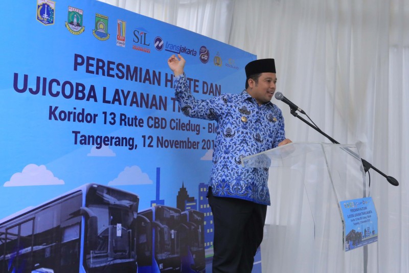 Dalam sambutannya, Wali Kota Tangerang H. Arief R. Wismansyah yang hadir beserta Wakil Wali Kota H. Sachrudin menyampaikan apresiasinya atas kerjasama baik yang terjalin antara Pemprov DKI Jakarta, Badan Pengelola Transportasi Jabodetabek (BPTJ), PT. Transjakarta dengan Pemkot Tangerang.