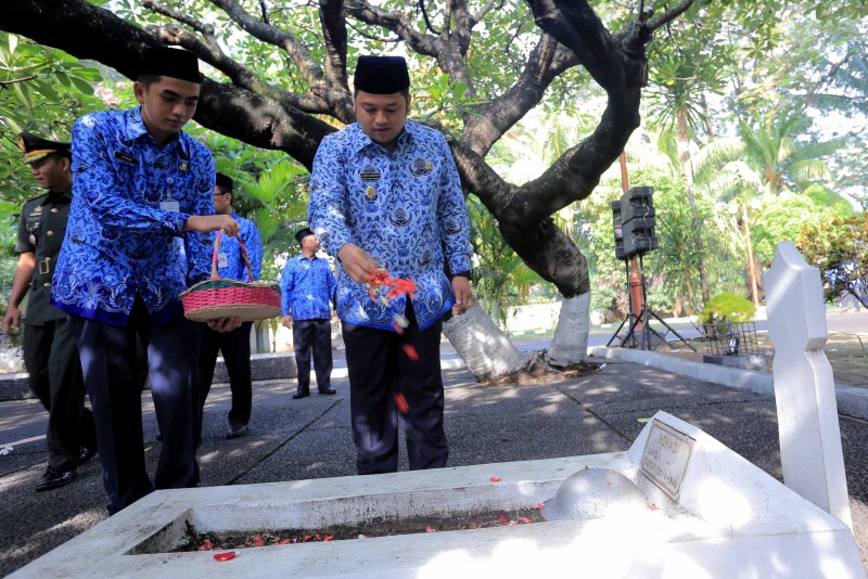 Wali Kota Tangerang H. Arief R. Wismansyah memimpin apel dalam rangka peringatan Hari Pahlawan yang diperingati pada tanggal 10 November setiap tahunnya di Taman Makam Pahlawan (TMP) Taruna, Senin (12/11).
