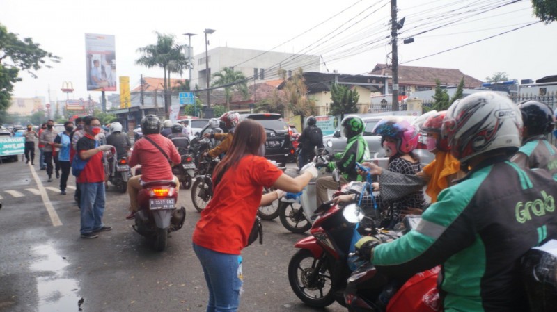 Bersama puluhan anggota komunitas ASA, petugas kepolisian dan anggota TNI, pembagian masker juga dilakukan di kawasan Pasar Anyar, Jalan Soleh Ali, Simpang 7 Neglasari. Mulai dari pengemudi jasa transportasi daring dan pedagang pasar, langsung menyerbu iring-iringan mobil yang membagikan masker.