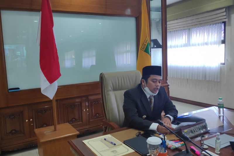 Hadir dalam video conference dimaksud Wali Kota Tangerang H. Arief R. Wismansyah yang menghadiri Rapat Paripurna di ruang kerjanya, pada Rabu (15/4).