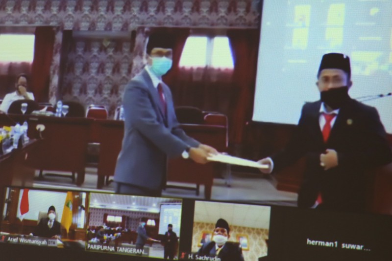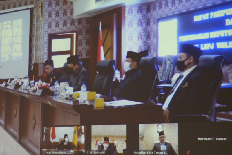 Masih dalam masa pemberlakuan social dan physical distancing dalam rangka memutus rantai penyebaran Covid-19 di Kota Tangerang, Rapat Paripurna Penyerahan Rekomendasi Laporan Keterangan Pertanggung Jawaban (LKPJ) Tahun 2019 dilakukan melalui video conference.