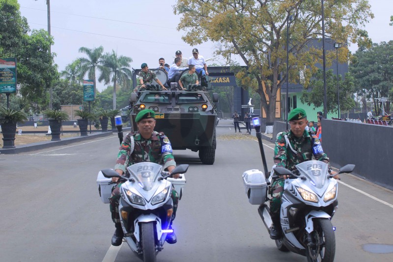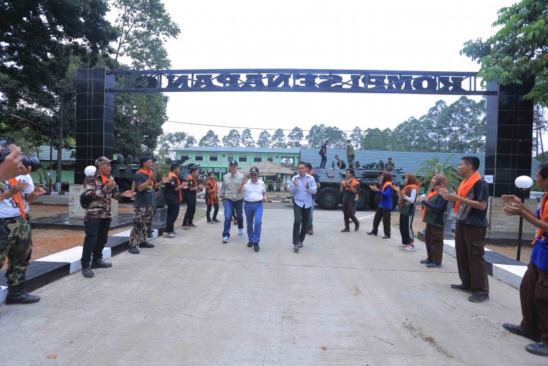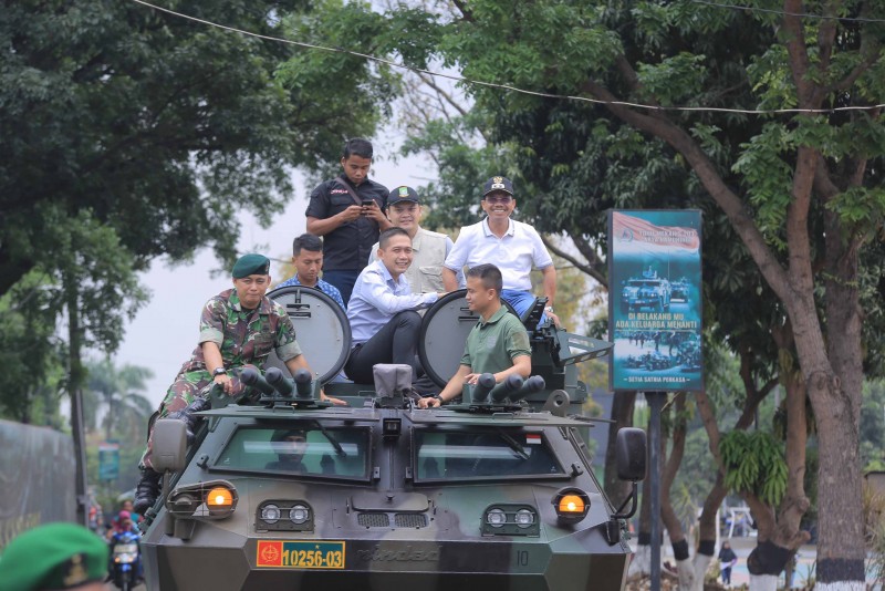 Dengan menaiki panser, Sachrudin mengunjungi lokasi dimana tak kurang dari 400 pemuda yang terhimpun dari berbagai organisasi dan komunitas mengikuti kegiatan kemah bakti.