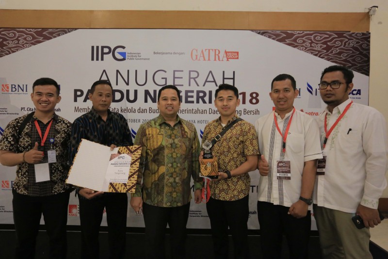 Pemerintah Kota (Pemkot) Tangerang menerima Penghargaan Anugerah Pandu Negeri 2018 dengan predikat Pemerintah Daerah dengan Kinerja dan Tata Kelola Baik yang diberikan oleh Indonesian Institute for Public Governance (IIPG) di Hotel Grand Sahid, Sudirman, Jakarta, Jumat (26/10/2018).