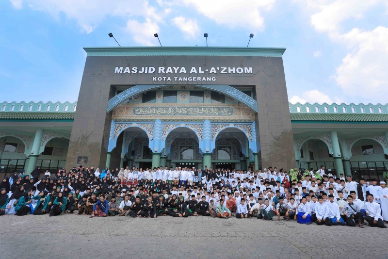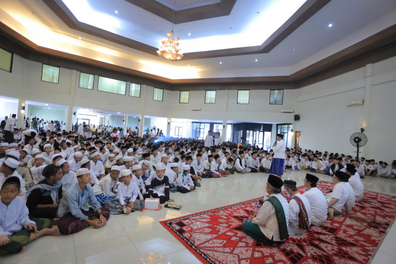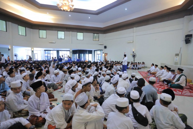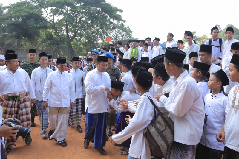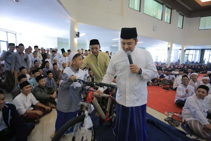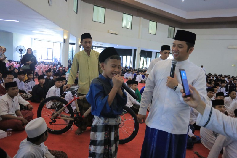 "Ayo santri pada ikutan, saya juga ikutan nanti yang menang dapat hadiah," seru Arief kepada santri yang memadati halaman Masjid Raya Al-Azhom.