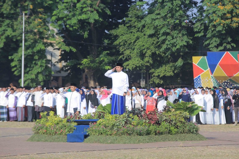 Ribuan masyarakat memadati Lapangan Ahmad Yani untuk bersama-sama dengan aparat pemerintah mengikuti apel bersama peringatan Hari Santri Nasional.