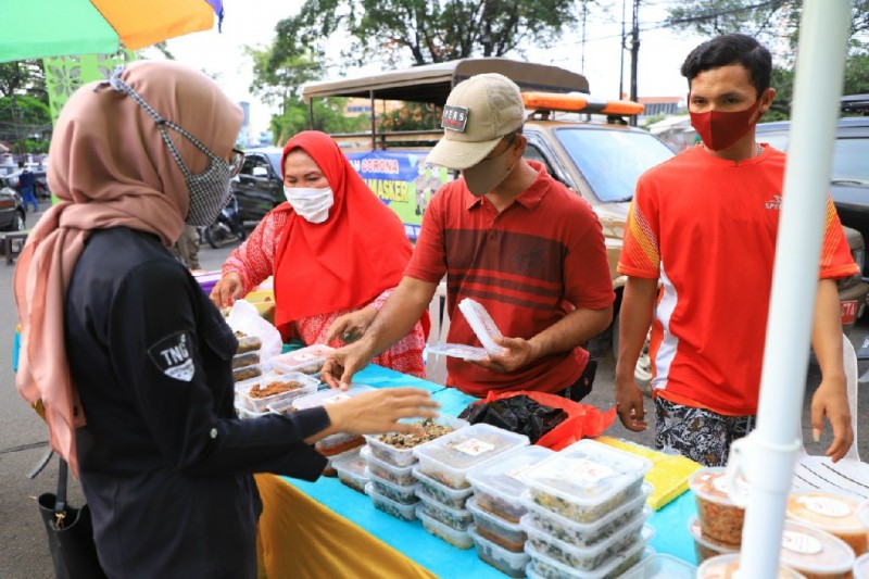 Seperti yang tampak di beberapa lapak penjual takjil ramadan. Pedagang maupun pembeli tetap memberlakukan aturan PSBB seperti penggunaan masker atau bahkan beberapa pembeli menggunakan sarung tangan plastik dan terapkan physical distancing.