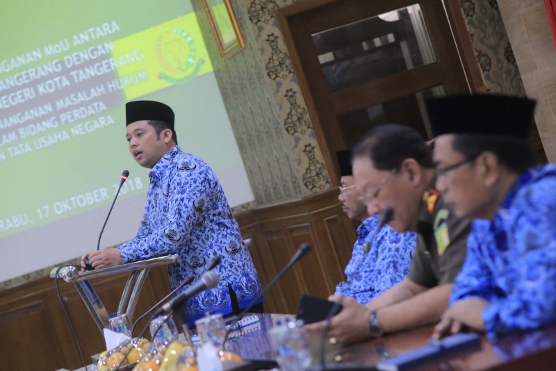 Pemerintah Kota Tangerang menggelar kesepakatan kerjasama dengan Kejaksaan Negeri (Kejari) Kota Tangerang Bidang Perdata dan Tata Usaha Negara di Gedung Akhlakul Karimah, Pusat Pemerintahan Kota Tangerang, Rabu (17/10).