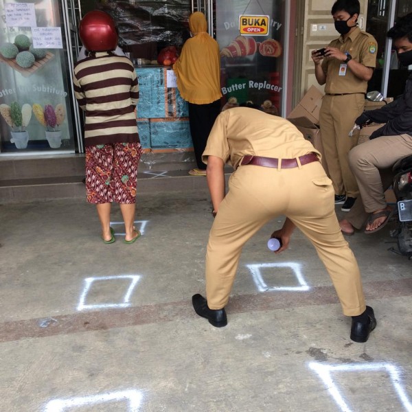 "Setiap lapak pedagang/PKL, toko/warung juga kami berikan tanda antrian dengan cat, sehingga pembeli tetap bisa jaga jarak. Antar lapak pedagang/toko/warung juga kami atur jaraknya agar tidak terlalu berdekatan," paparnya.