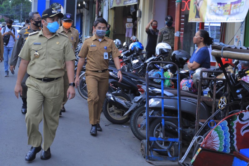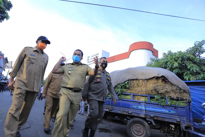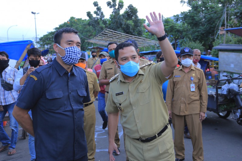 Wali Kota Tangerang Arief R. Wismansyah bersama Wakil Wali Kota Sachrudin serta Sekda Kota Tangerang Herman Suwarman melakukan evaluasi PSBB dengan sidak ke sejumlah pasar tradisional yang berada di wilayah Kota Tangerang.
