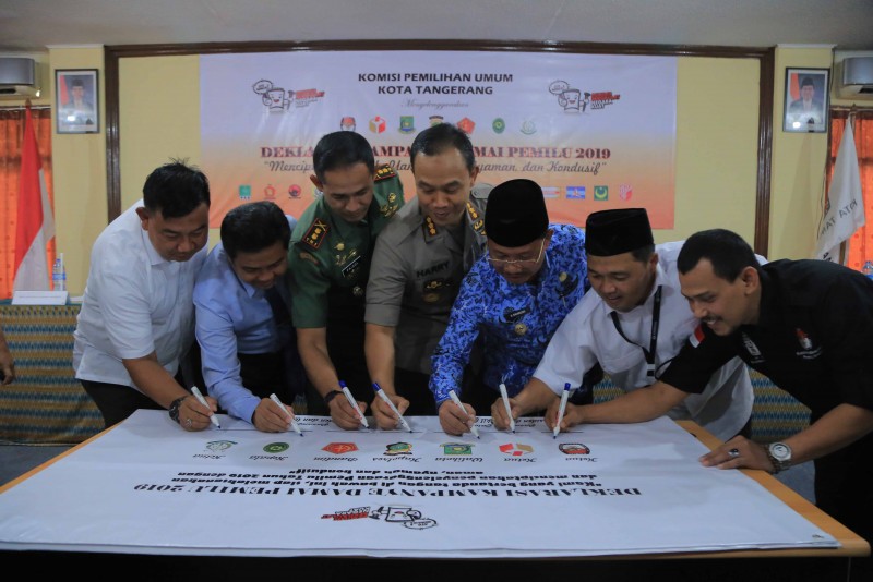 Sebagai informasi, dalam kegiatan ini selain pembacaan ikrar deklarasi kampanye damai, dilakukan juga penandatanganan kampanye damai 2019, sebagai simbol dimulainya masa kampanye damai.