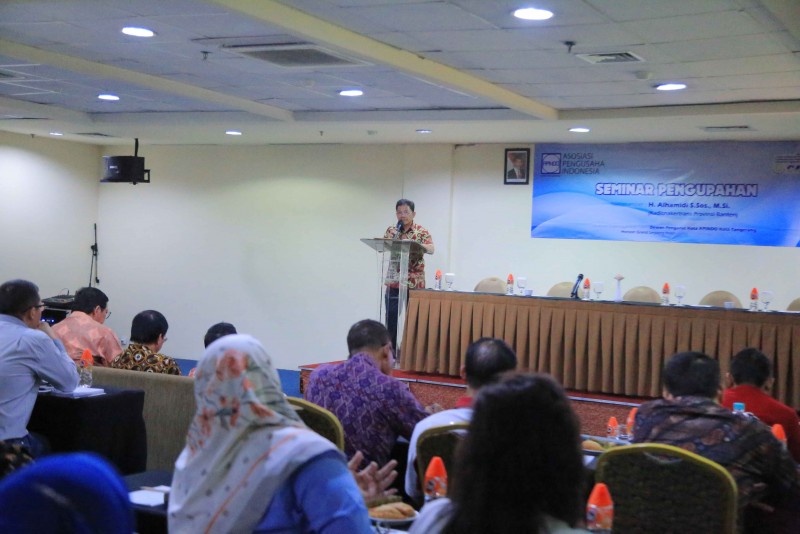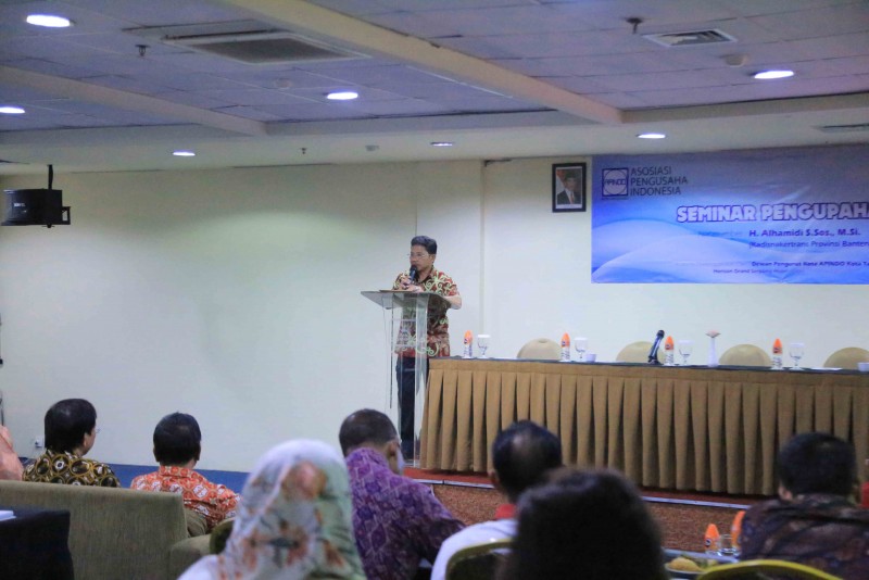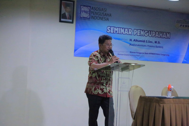 Dewan Pengurus Asosiasi Pengusaha Indonesia (APINDO) Kota Tangerang menggelar acara Seminar Pengupahan yang diselenggarakan di Hotel Horison Grand Serpong Hotel, Tangerang, Kamis (27/9).