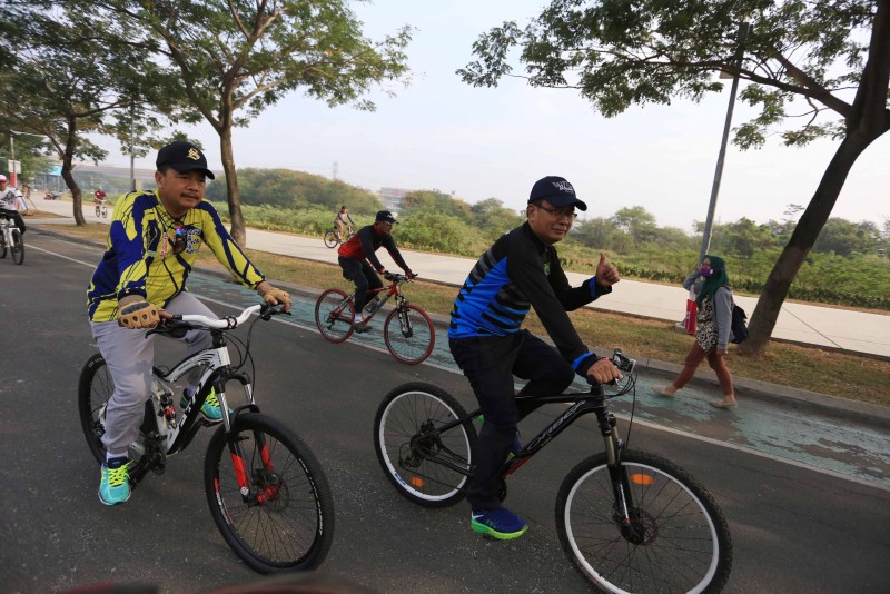 Wali Kota Tangerang Arief R. Wismansyah bersama wakilnya Sachrudin, Jumat (14/09) pagi, gowes sepeda bareng dengan jajaran pejabat teknis. Kali ini rombongan Wali Kota menuju ke wilayah Kecamatan Pinang.