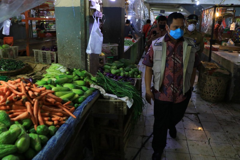 Inspeksi ini dilakukan mengingat hari ini adalah hari pertama pemberian tindakan bagi masyarakat yang tidak mematuhi aturan PSBB. Dalam kesempatan tersebut, Arief menegur sejumlah pedagang yang tidak mengenakan masker ketika sedang melakukan aktivitas jual beli di pasar tersebut.