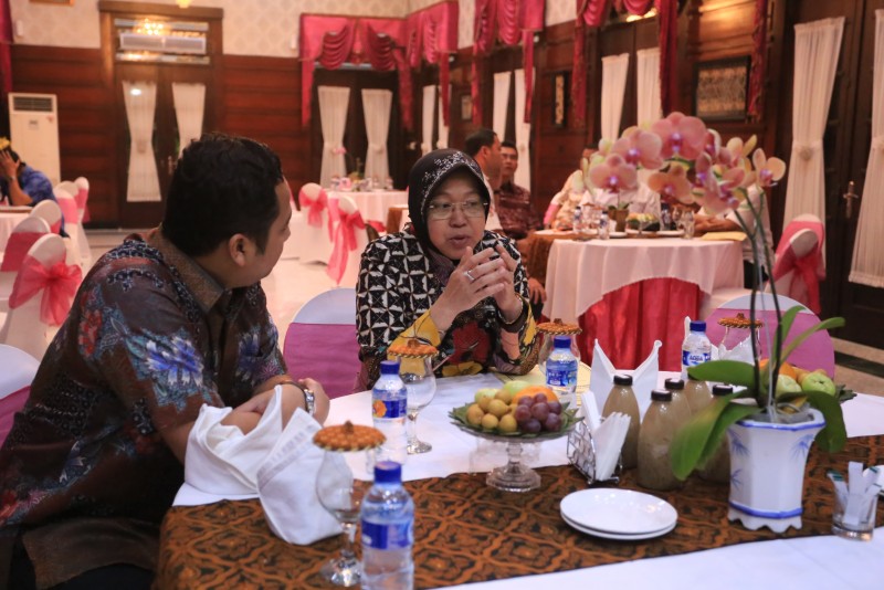 Selama kurang lebih satu jam Arief dan Risma berdiskusi dan saling sharing ilmu pengelolaan kota, sambil ditemani makanan dan camilan khas Surabaya seperti Nasi Rawon, Tahu Campur dan Es Selasih.