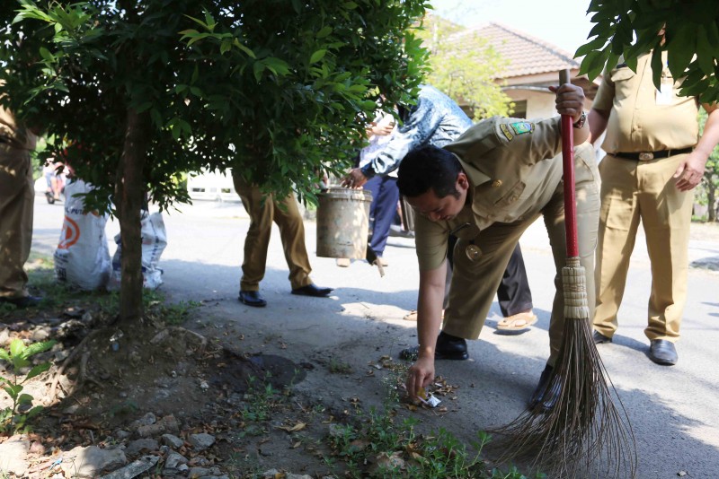 Selesai membersihkan sampah, Arief selanjutnya mengumpulkan para pegawai di halaman kelurahan. Dalam arahannya Arief meminta agar para pegawai kelurahan bisa menjadi contoh bagi warga masyarakatnya.