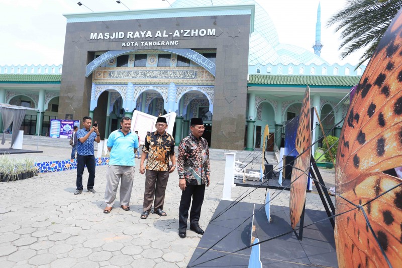 "Dirapihin lagi sedikit, supaya kalau dipakaiĀ foto bisa bagus," ujar Sachrudin kepada panitia di Halaman Masjid Raya Al-A'zhom, Kota Tangerang, Sabtu (8/9).