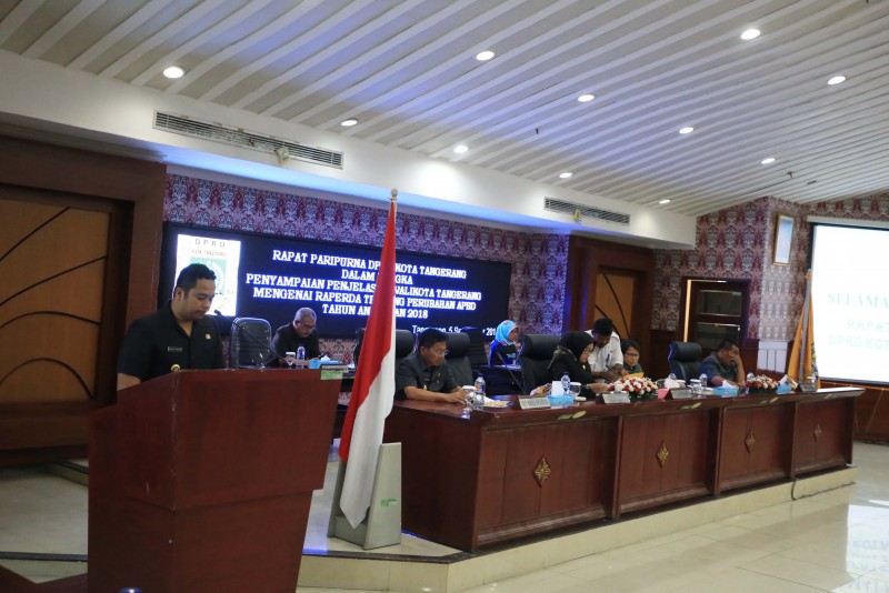 Dewan Perwakilan Rakyat Daerah (DPRD) Kota Tangerang menggelar Rapat Paripurna dalam rangka Penyampaian Penjelasan Wali Kota Tangerang mengenai Raperda tentang Perubahan APBD Tahun Anggaran 2018.