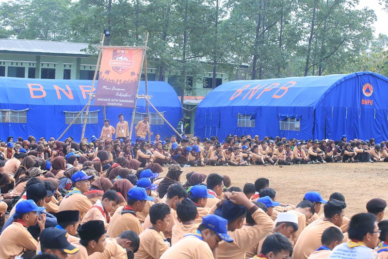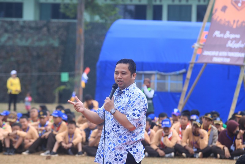 Wali Kota Tangerang H. Arief R. Wismansyah menghadiri acara Jambore Pramuka Cabang Kota Tangerang III Tahun 2018 yang berlokasi di Kompi Senapan C, Yonif Mekanis 203 Arya Kemuning, Jatiuwung, Kota Tangerang, Sabtu (1/9).