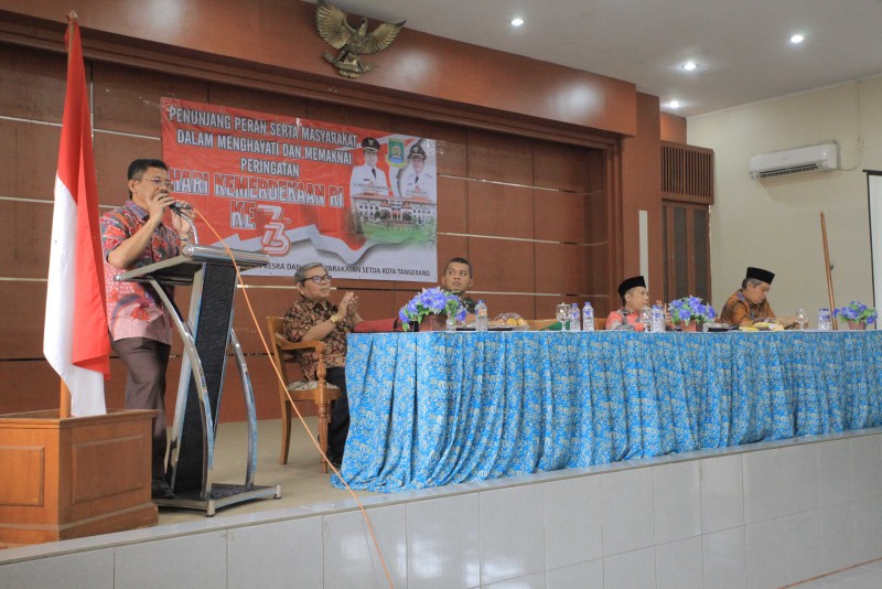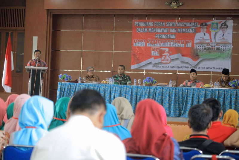 Hal tersebut disampaikan Wakil Wali Kota Tangerang H. Sachrudin pada kegiatan Penunjang Peran Serta Masyarakat Dalam Menghayati dan Memaknai Hari Besar Nasional Bagi Kelompok Masyarakat Dalam Rangka Memperingati HUT Kemerdekaan RI Ke-73, yang bertempat di Gedung Nyimas Melati, Kamis (30/08).