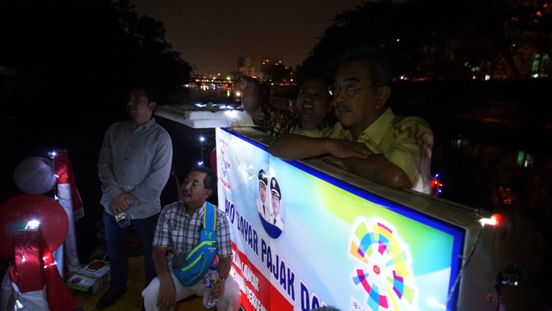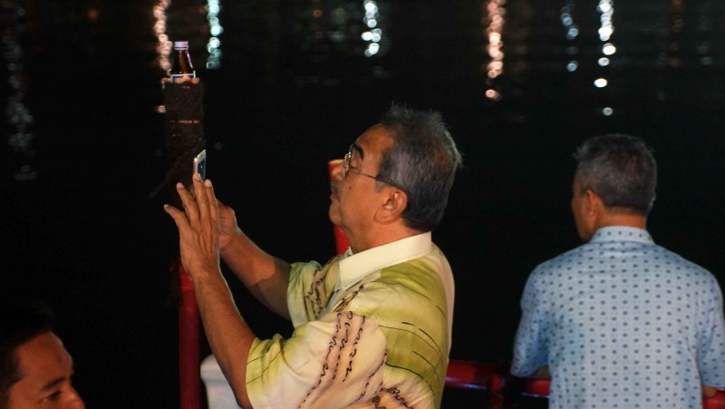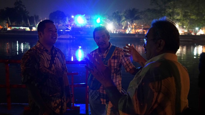 Ketua Menteri Melaka Ke-9 Negara Bagian Melaka, Mohd Ali Rustam, yang datang bersama dengan Mantan Wali Kota Melaka, Datuk Yusof bin H. Jantan, mengujungi lokasi Festival Cisadane 2018 di bantaran Sungai Cisadane, Kota Tangerang, Selasa (28/8) malam.