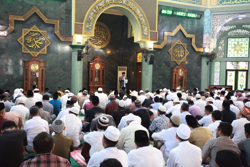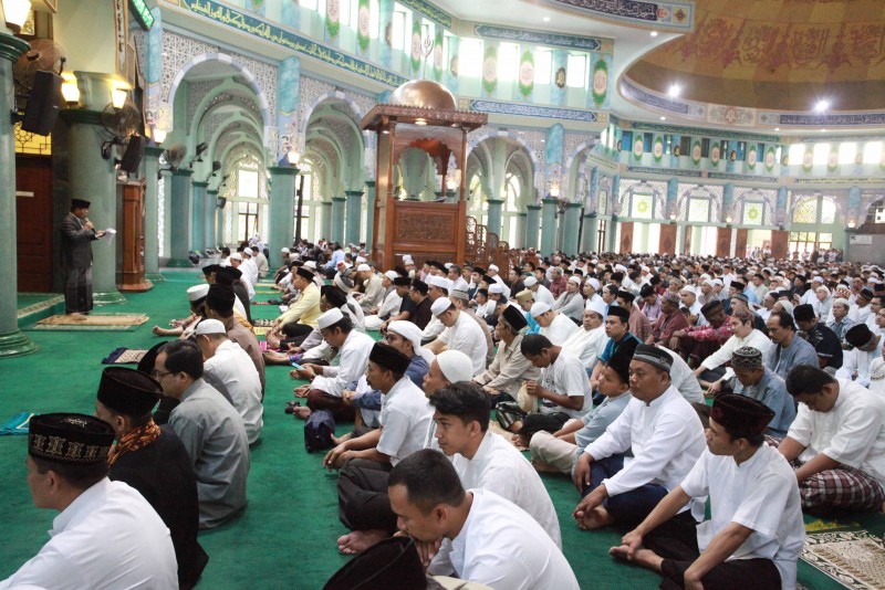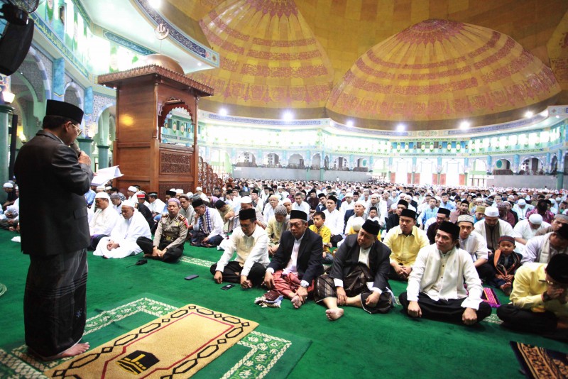 Wakil Wali Kota Tangerang H. Sachrudin bersama dengan keluarga serta masyarakat Kota Tangerang melaksanakan Shalat Idul Adha 1439 H di Masjid Raya Al-A'zhom, Kawasan Pusat Pemerintahan Kota Tangerang, Rabu (22/8).